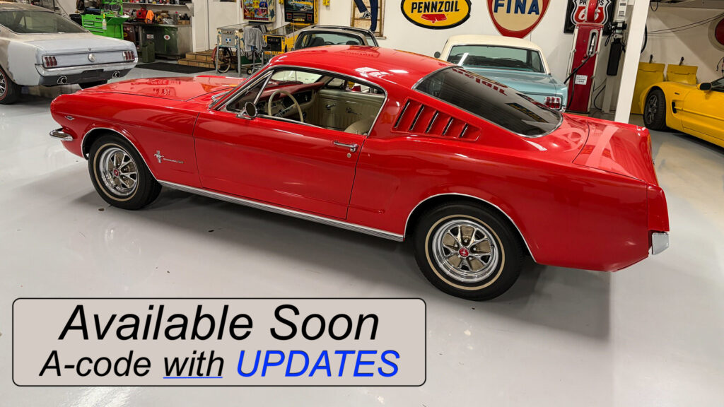 1965 A-code Mustang Fastback 5-Speed, Rangoon Red … Details coming soon!