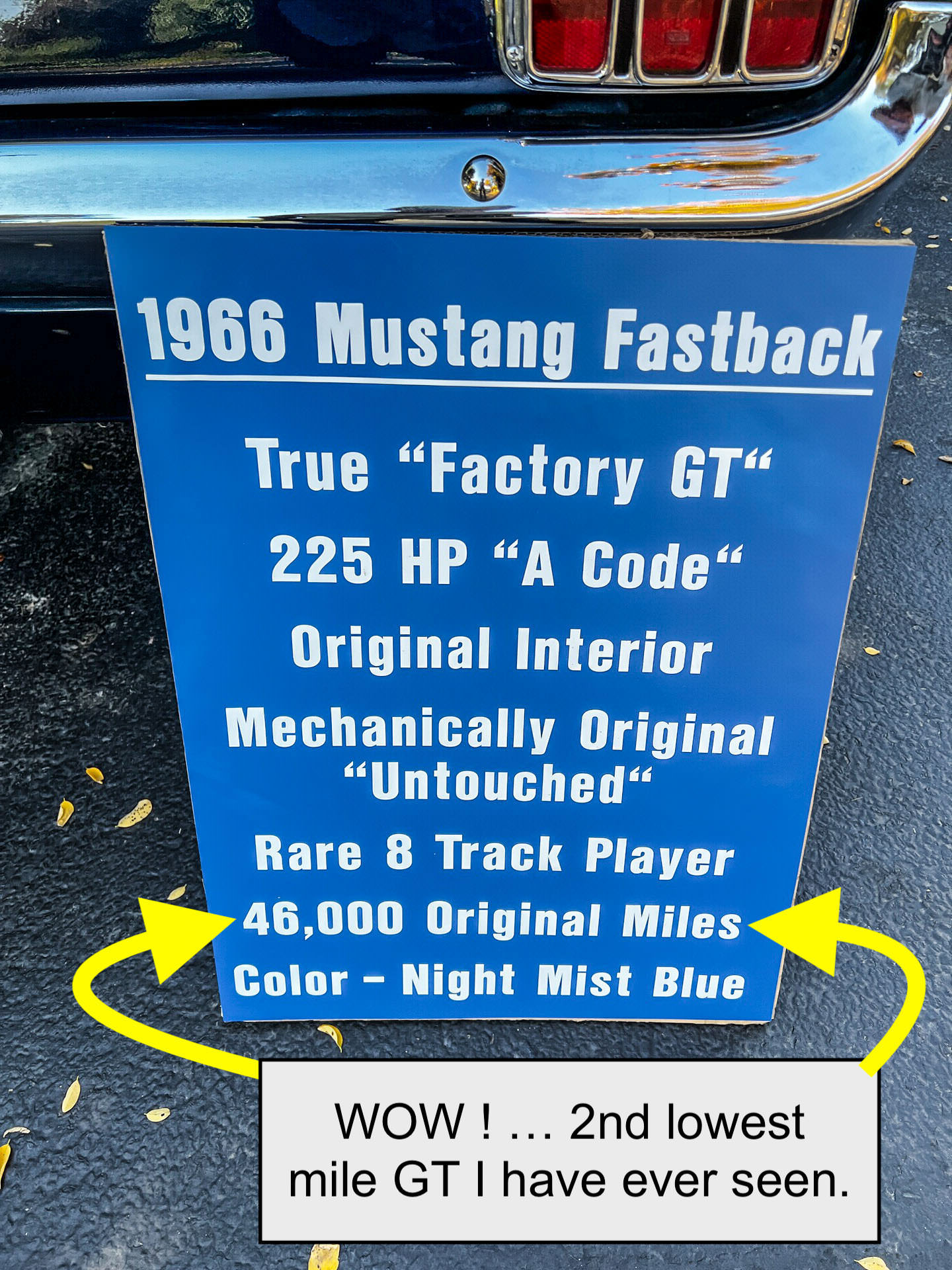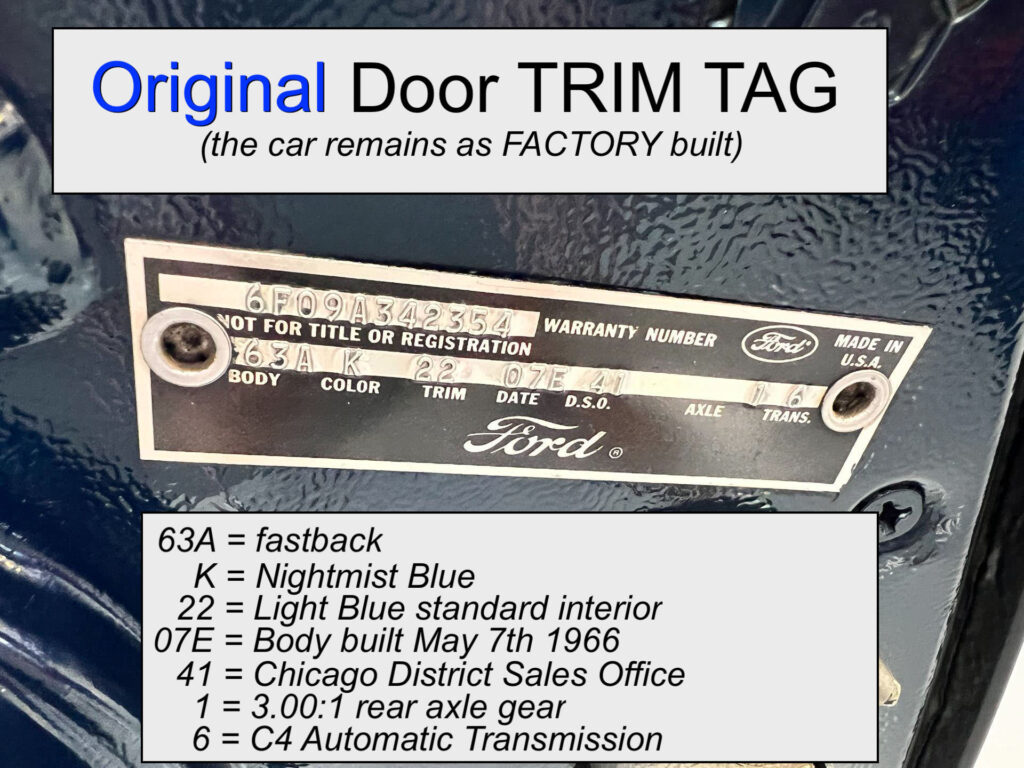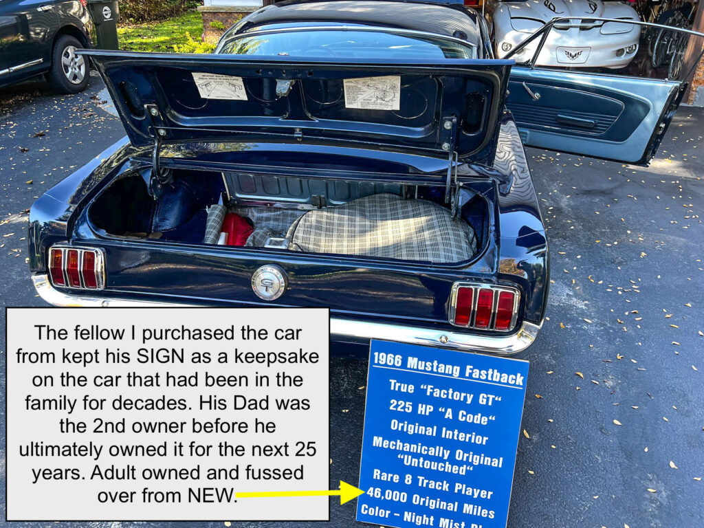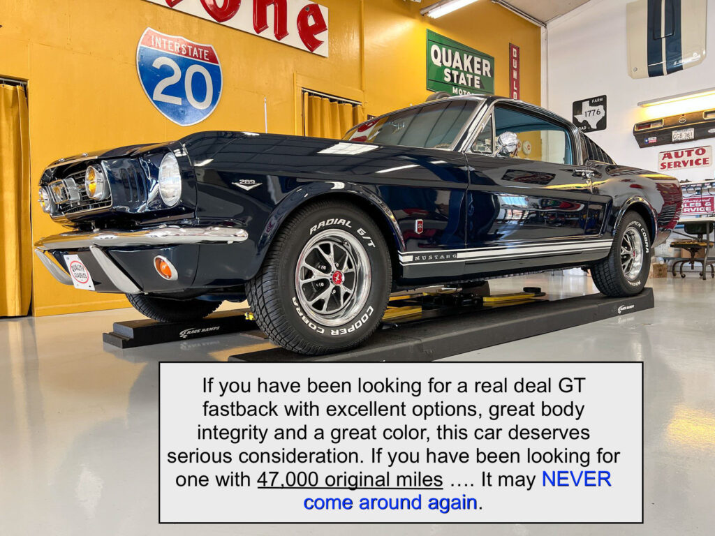 We are excited to offer yet another rare find. This is not only guaranteed to be a true ‘factory built GT’ (authenticated by us in our inspection), it is said to be a true 47k original mile car by its long term owner of the last 25 years. His dad owned it before him. Extremely well preserved and very original with only one repaint and engine bay detailing. It runs, drives and handles very nicely just as you would expect from a well preserved, highly original 1966 GT Mustang.